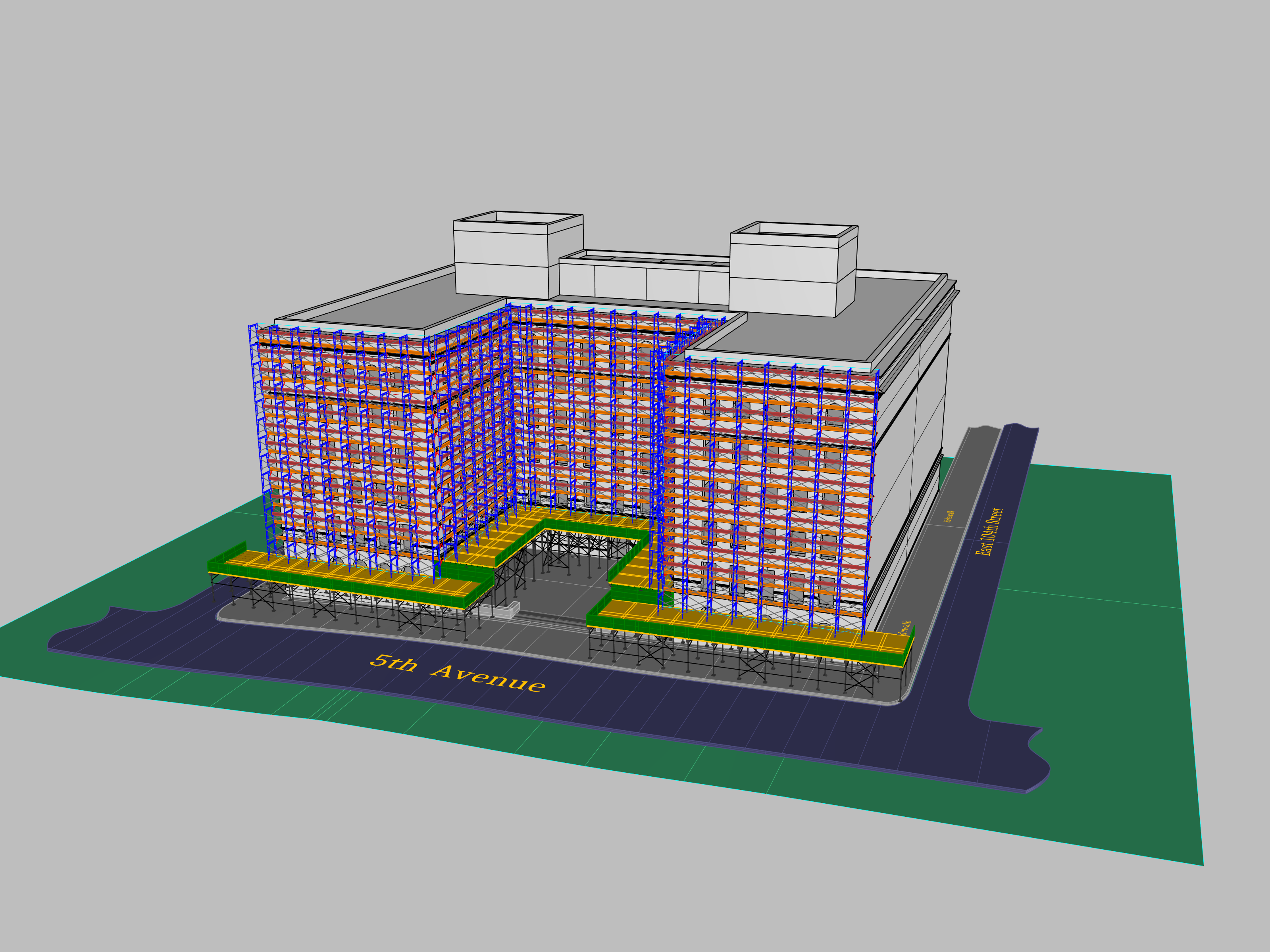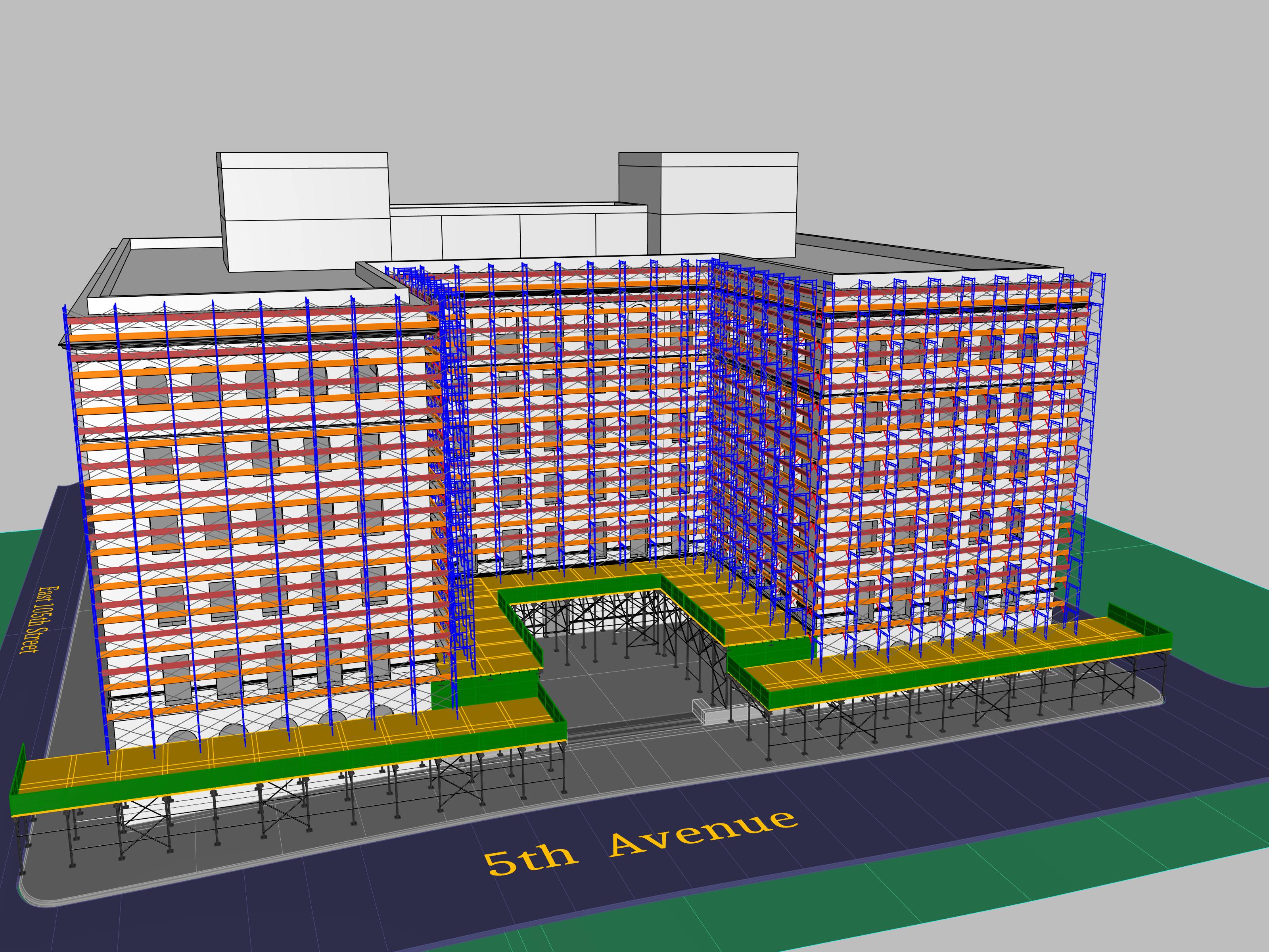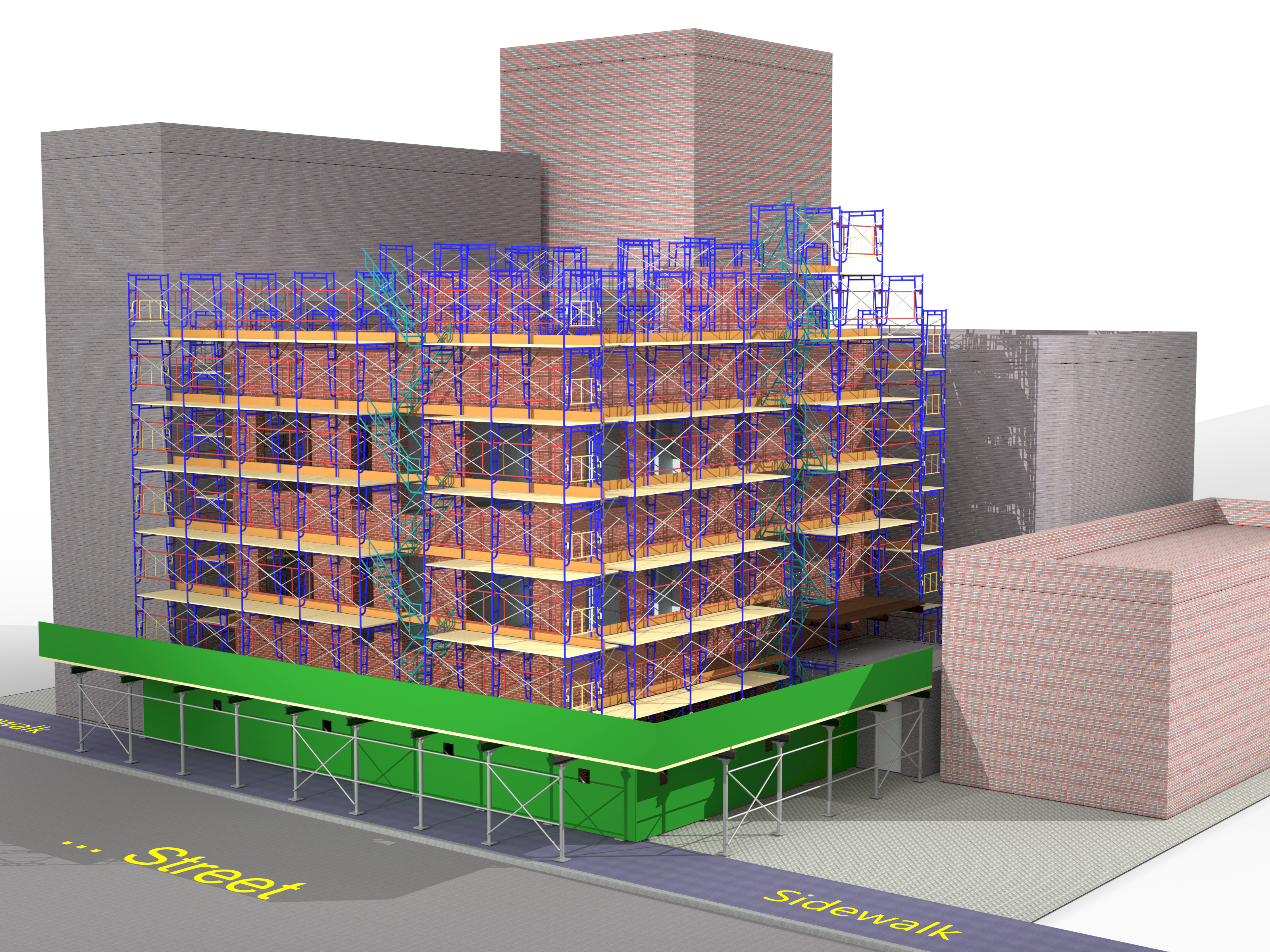 SIDEWALK SHED, PIPE SCAFFOLDS, ROOF PROTECTION, NEEDLE BEAMS, ETC.