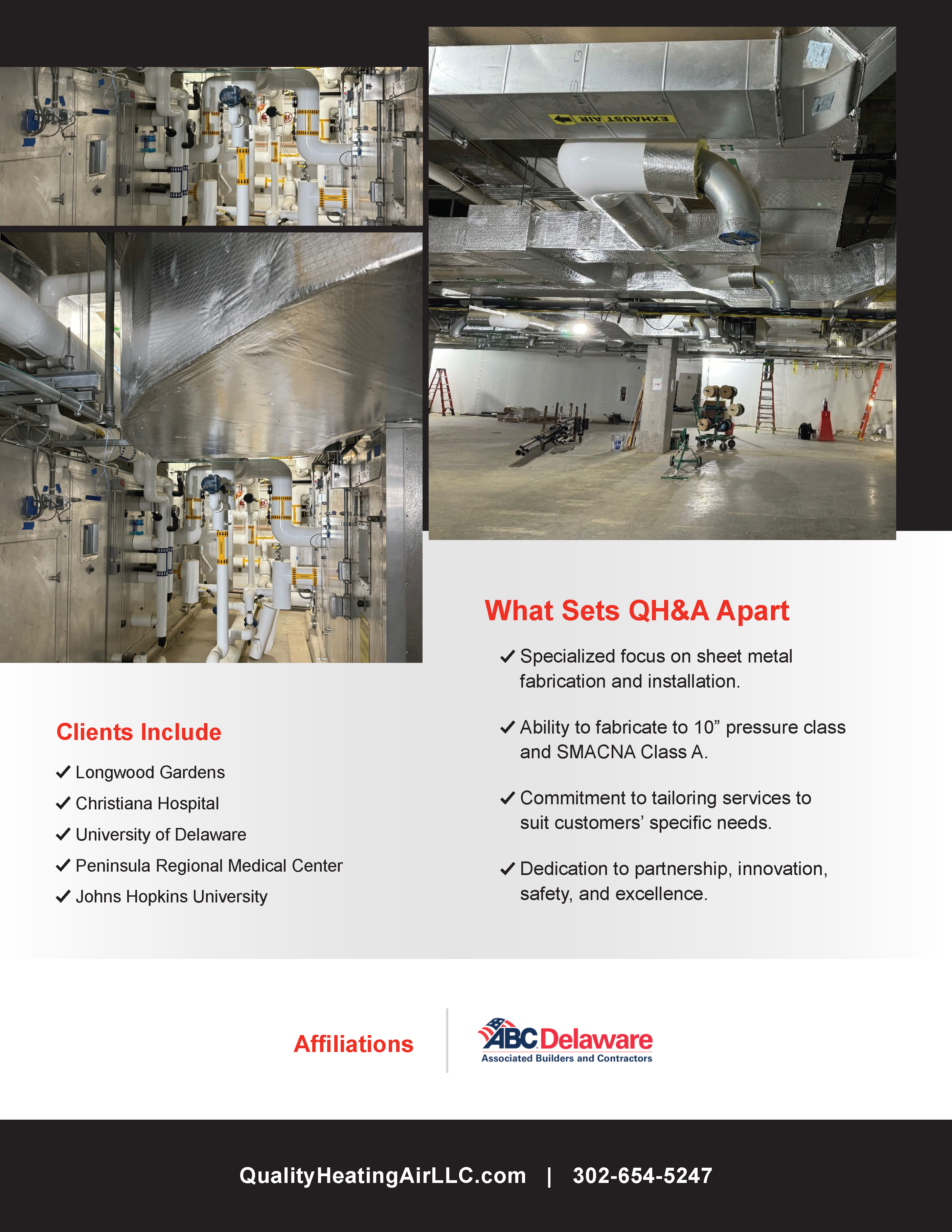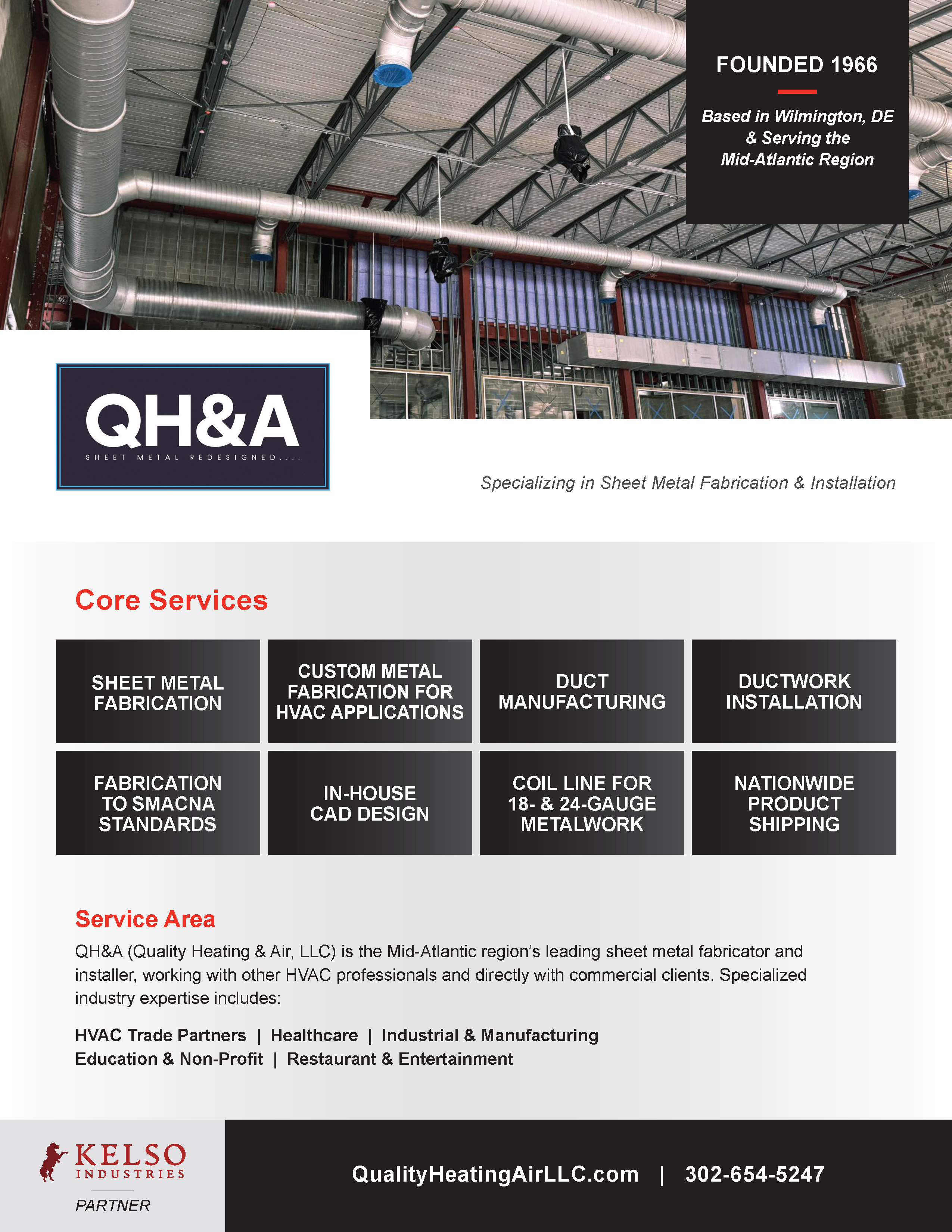 QH&A (Quality Heating & Air, LLC) is the Mid-Atlantic region's leading sheet metal fabricator and installer, working with other HVAC professionals and directly with commercial clients.